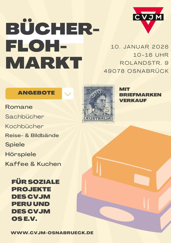 Startseite> News CVJM Osnabrück> Flohmarkt für Bücher und Briefmarken am 10. Januar 2026